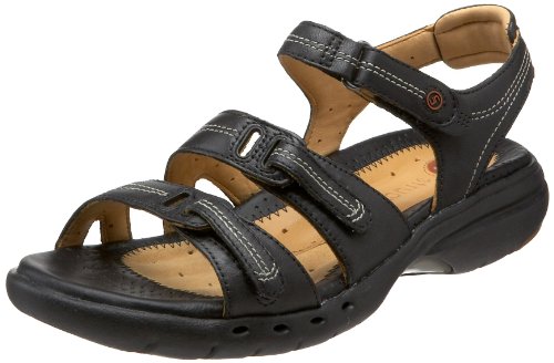 Fantastico!, July 27, 2011 By This review is from: Clarks Women's Un.Port Sandal (Apparel) I bought these sandals in black before a recent trip to Spain and wore them constantly. They are nice enough looking to wear with a summery dress, but are incredibly comfortable. The strap allows for size adjustment which helps if your feet swell, and they are lightweight and a bit squishable, which makes them easy to pack. The best thing however is the thick sole. In Spain I found myself walking endlessly on pebbled pavements, cobbled streets, and walkways of sand. I wore these to the Alhambra for a good five hours of walking on tough surfaces, up and down steps, etc. They provide so much padding that they really help your poor feet, which can really suffer on those kinds of surfaces. I have already talked a friend into buying a pair for her own upcoming Europe trip and she loves them too. I am now about to buy a 2nd pair in titanium because I love them so much.